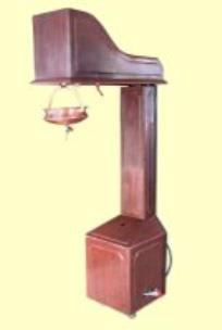 This filters used oil, warms it to constant temp. and pumps it to the oscillating vessel positioned over the patient's head silently. The swinging width can be adjusted.
